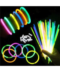 Светящаяся в темноте неоновая палочка (ХИС) представляет собой изделие, состоящее из пластиковой трубки и неона, которое начинает светиться сразу же, как ее согнут и потрясут. В наборе 100 палочек, а так же коннекторы для соединения палочек в браслеты.